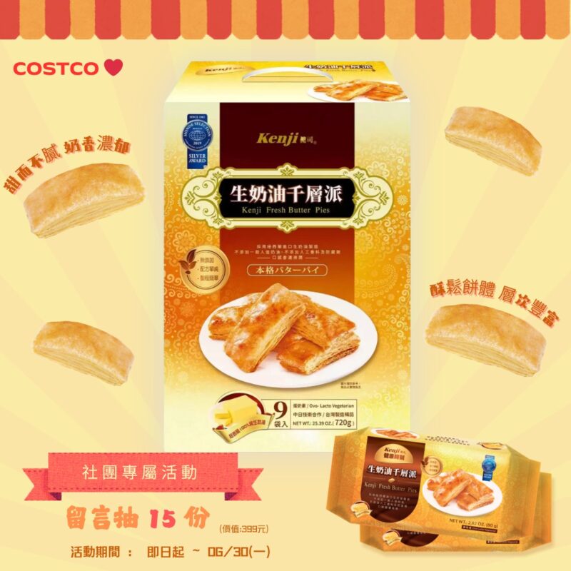 KENJI 健司生奶油千層派,連續4年榮獲 Monde Selection 金獎(食品界的奧斯卡),好市多熱銷零食,現在留言就有機會免費品嚐!
