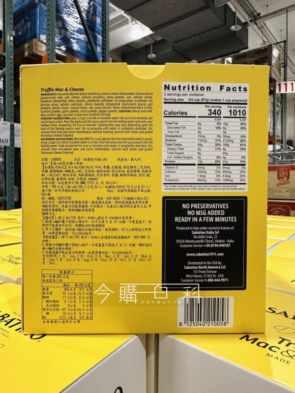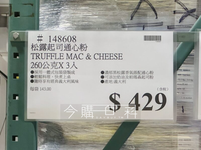 採用一體式包裝袋製成,輕鬆料理,快煮上桌,隨時享有經典義大利風味,濃郁黑松露香氣搭配通心粉,可添加奶油及帕瑪森起司粉,產地:義大利。