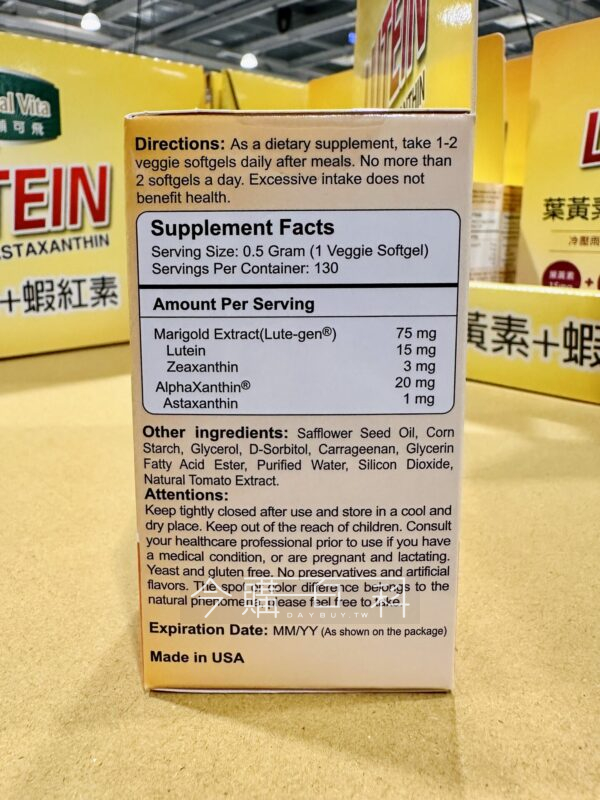 美國NVC原廠原裝進口,黃金比例成份5:1,100%專業游離態葉黃素,植物性軟膠囊無人工色素,100%冷壓紅藻萃取蝦紅素。