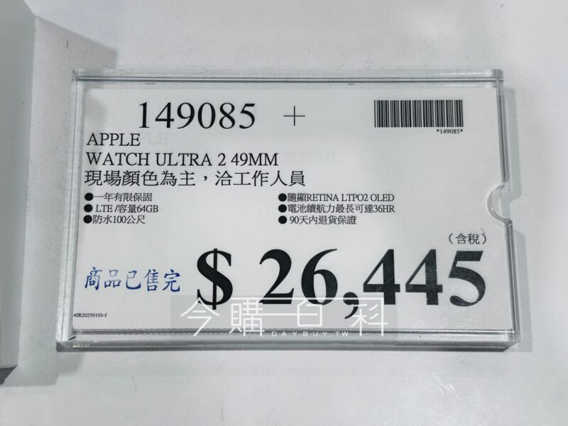 一年有限保固,LTE/容量64GB,防水100公尺,隨顯RETINA LTPO2 OLED,電池續航力最長可達36HR,90天內退貨保證。