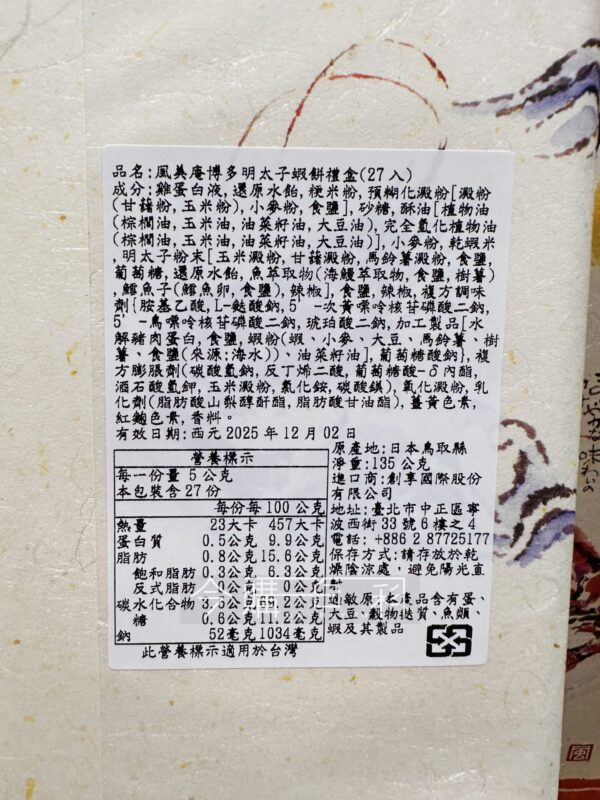 嚴選日本國產蓬萊米製成,佐以海鹽、明太子粉、蝦等,帶出海洋香氣風味濃郁,慢火烘烤至口感鬆脆,獨立包裝易分享,產地:日本福岡。