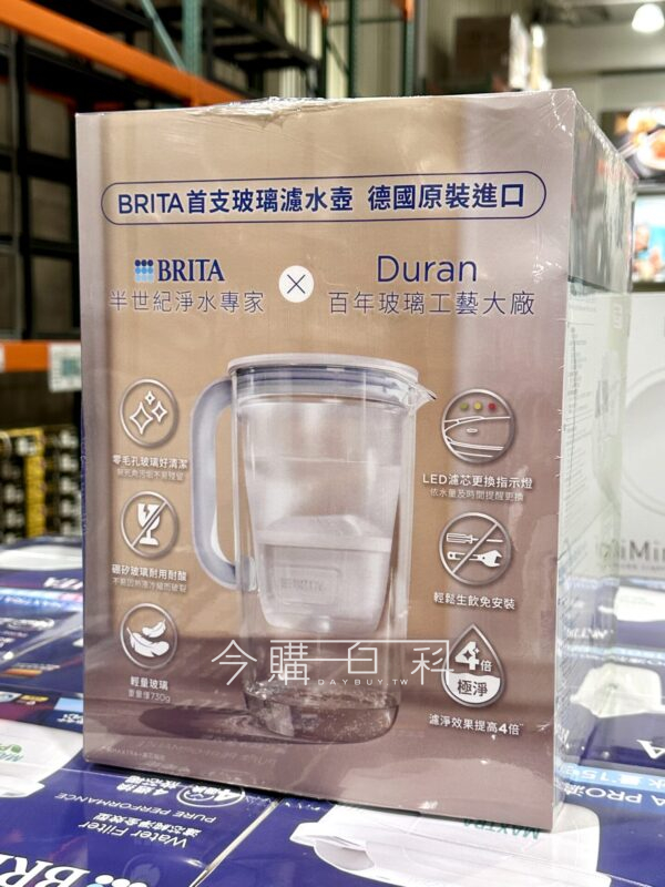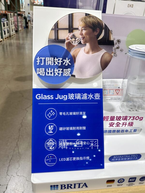 玻璃濾水壺產地德國,玻璃抗酸鹼,污垢不易殘留,2.5公升超大容量,按壓式掀蓋注水口,LED智慧濾心指示燈,適用KS濾芯。