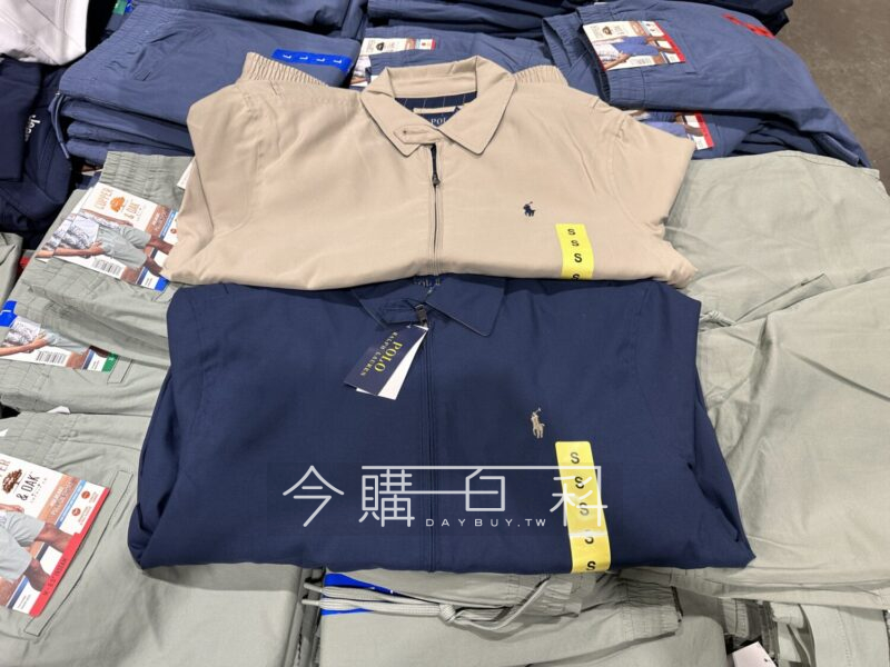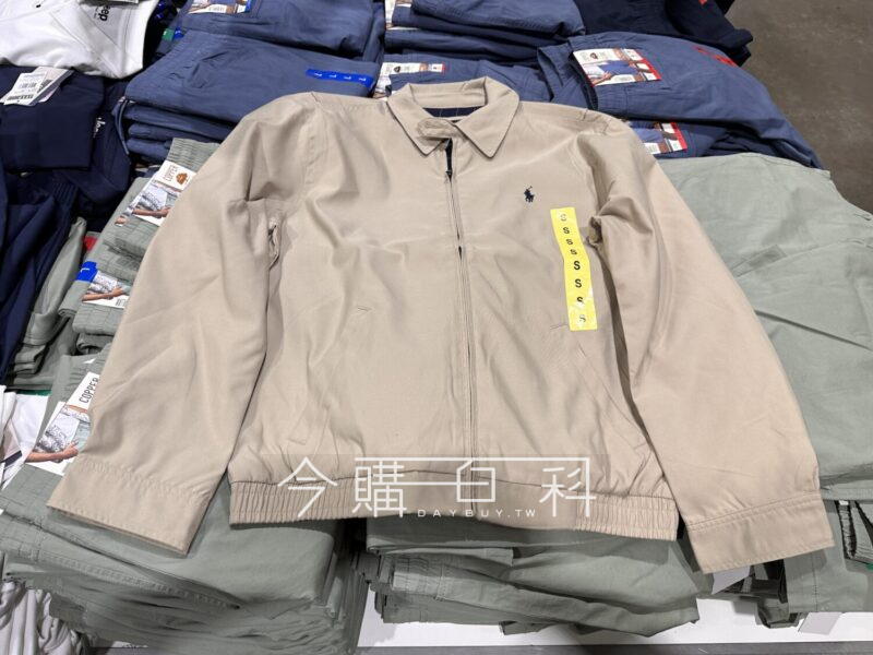 品牌刺繡LOGO於左胸,防風防潑水布料使用,縮口下擺及袖口鈕扣。
