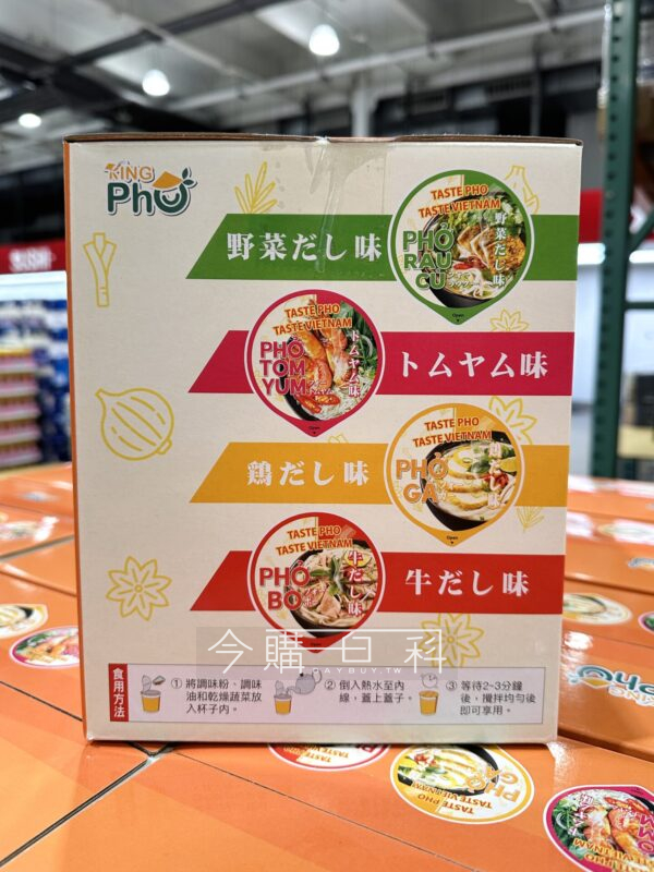 嚴選四種風味,一次滿足,野菜風味、酸辣蝦湯風味、熟牛肉風味、雞絲風味,高品質河粉,完美吸附湯汁,3分鐘快速沖泡,隨時享用,傳統越南風味。