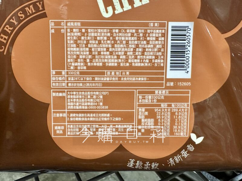 採用全蛋打發工法,保留雞蛋香氣,口感柔軟濕潤、綿密有層次。