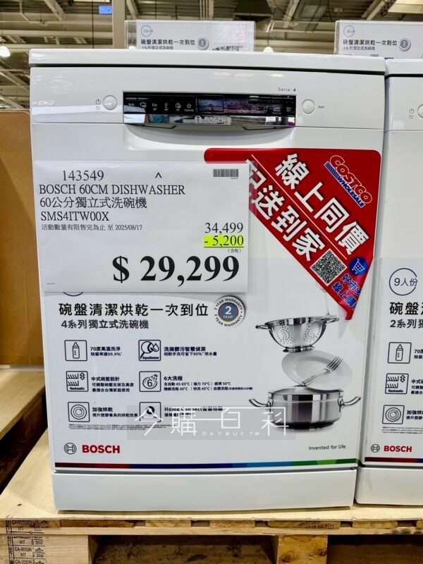 BOSCH 60公分獨立式洗碗機 SMS4ITW00X #143549