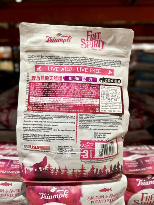 使用去骨鮭魚,添加維生素及礦物質,無人工色素、香料、防腐劑,不含大豆、玉米、小麥,精選動物性蛋白質來源,優質脂肪酸,保健皮膚毛髮。