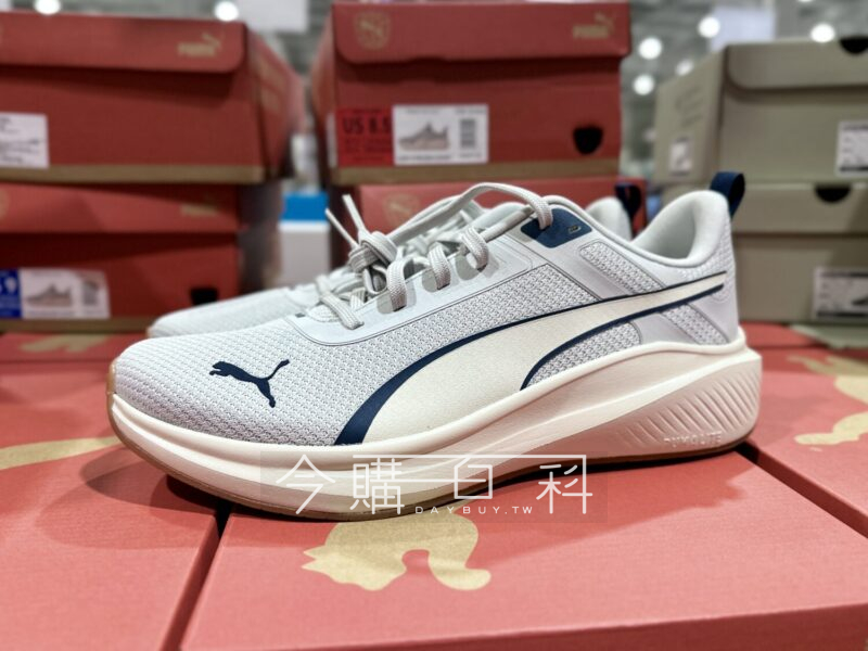 輕量中底穿著舒適,大底為前後腳掌包覆橡膠,提供良好抓地力,透氣網布鞋面,適合日常健走步行使用。