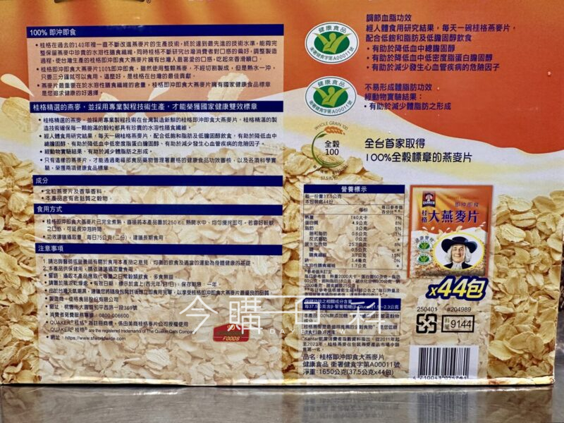 國家健康食品認證,整塊桂格大燕麥片壓製而成,即沖即食,燕麥原料產地:澳洲,完整保留燕麥營養。