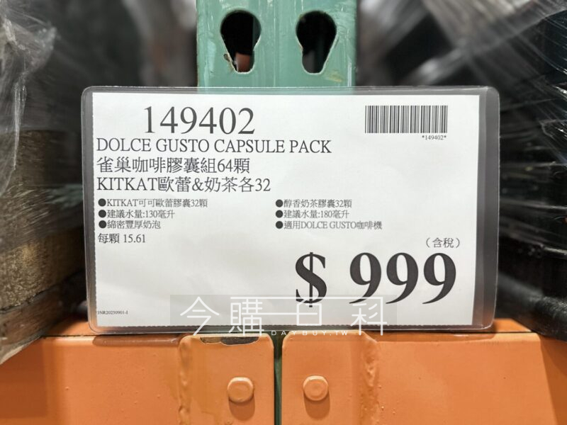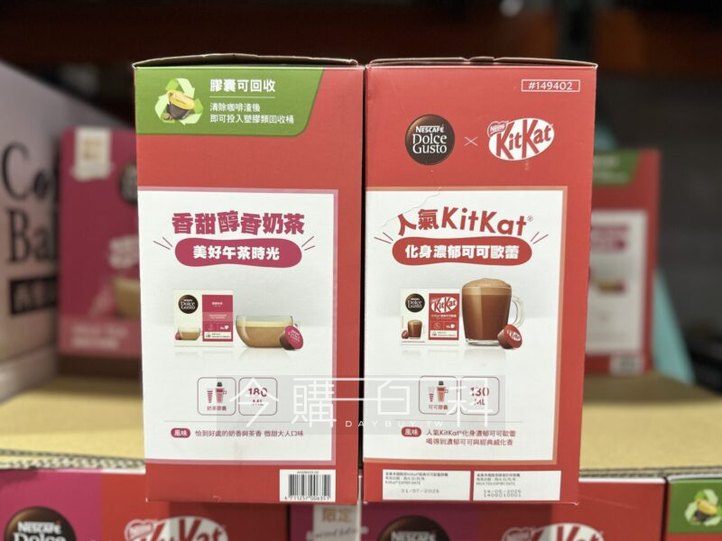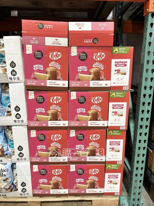 KITKAT可可歐蕾膠囊32顆,建議水量:130毫升,綿密豐厚奶泡,醇香奶茶膠囊32顆,建議水量:180毫升,適用DOLCE GUSTO咖啡機。