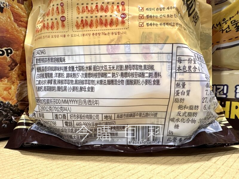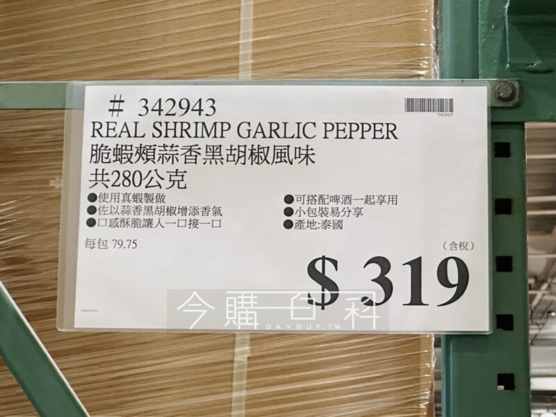使用真蝦製做,佐以蒜香黑胡椒增添香氣,口感酥脆讓人一口接一口,可搭配啤酒一起享用,小包裝易分享,產地:泰國。
