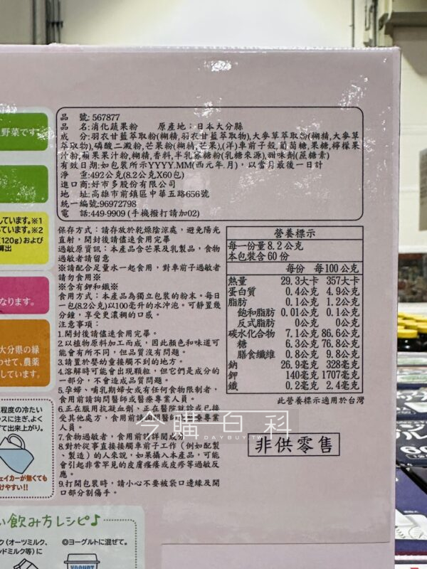 羽衣甘藍、芒果、蘋果和檸檬風味,日本製造,隨身包裝、方便攜帶,可加入溫冷水、牛奶或豆漿。