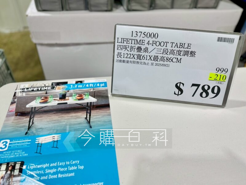 LIFETIME 四呎折疊桌/三段高度調整 #1375000