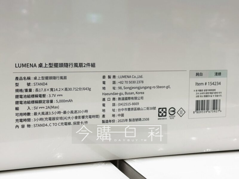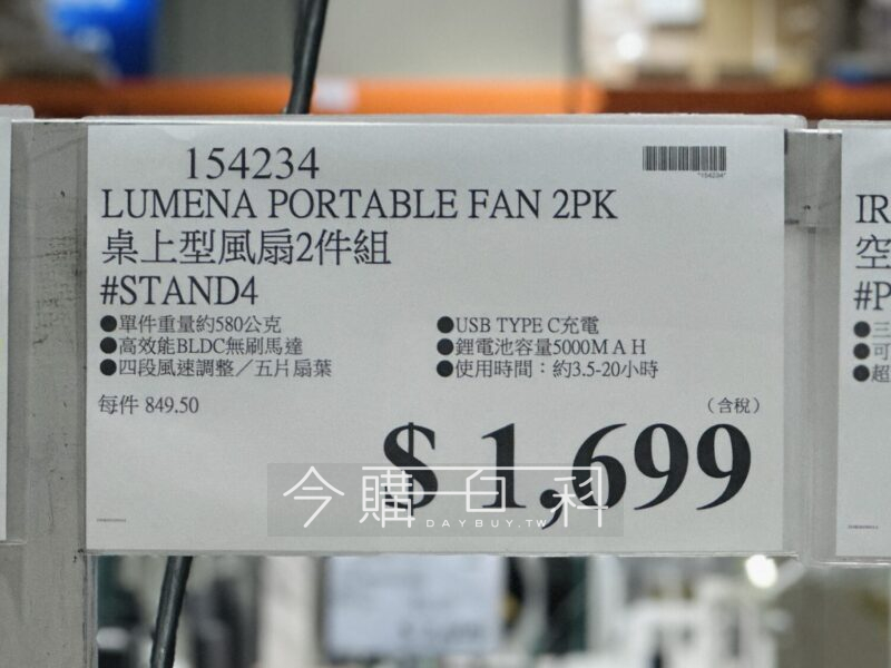 單件重量約580公克,高效能BLDC無刷馬達,四段風速調整/五片扇葉,USB TYPE C充電,鋰電池容量5000MAH,使用時間約3.5-20小時。