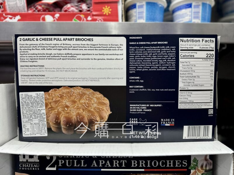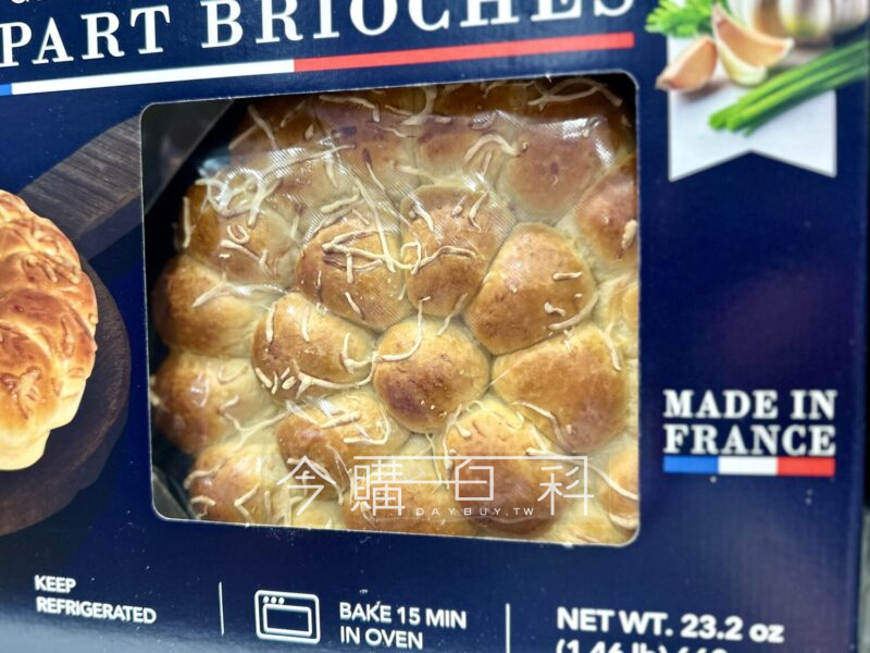 法式經典布里歐,內餡有大蒜與埃曼塔乾酪,外酥內軟,口感鬆軟滑順。