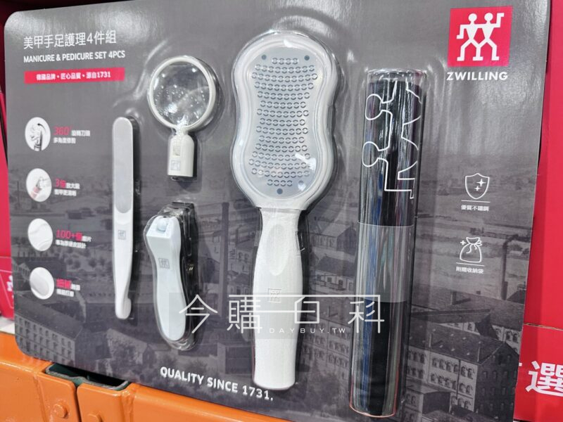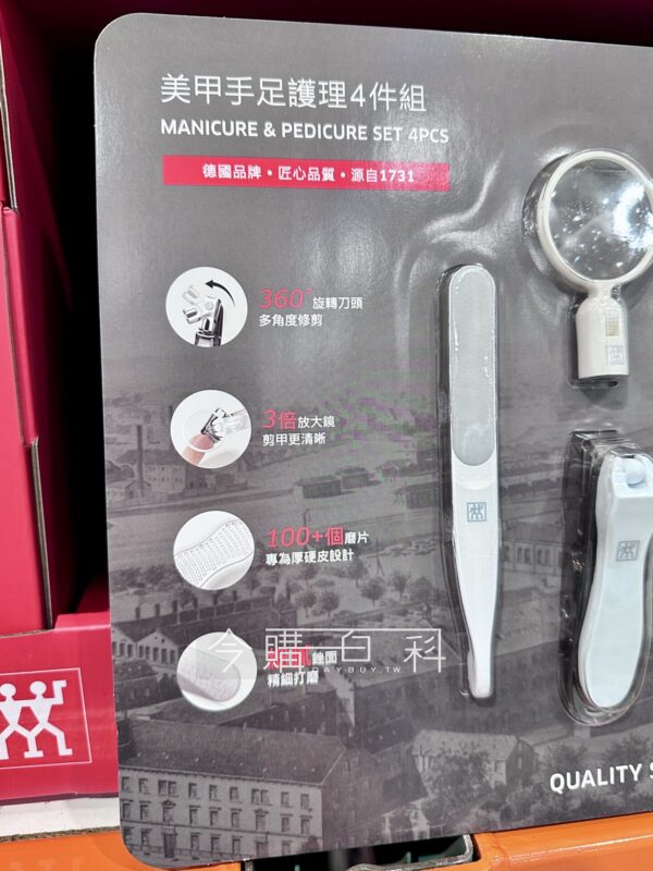 內含360度旋轉指甲剪、3倍放大鏡、指甲銼、足部死皮銼、收納袋,旋轉刀頭可多角度修剪,包含細膩挫面,可精細打磨,韓國製造。