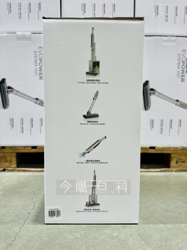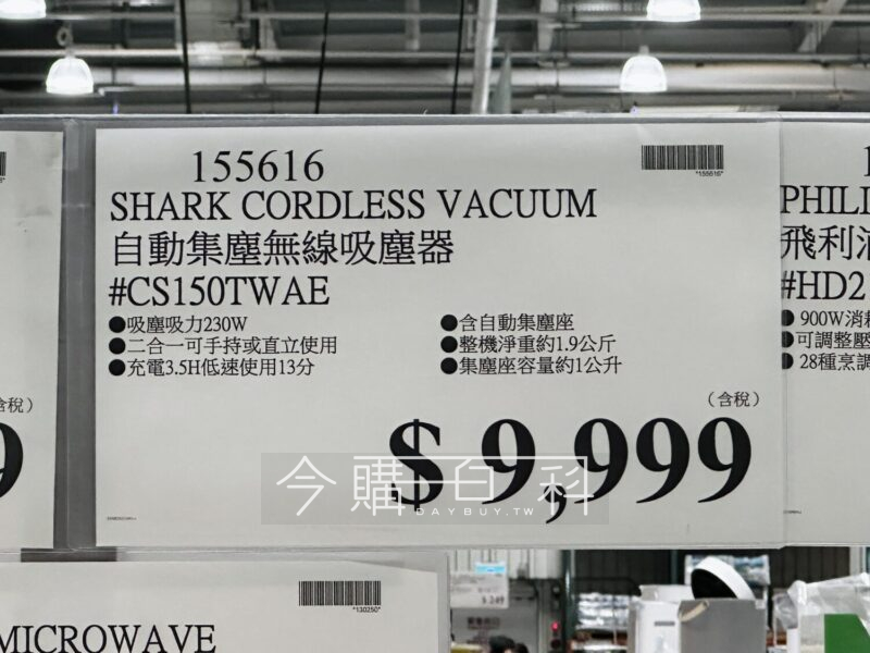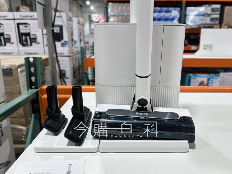 吸塵吸力230W,二合一可手持或直立使用,充電3.5H低速使用13分,含自動集塵座,整機淨重約1.9公斤,集塵座容量約1公升。