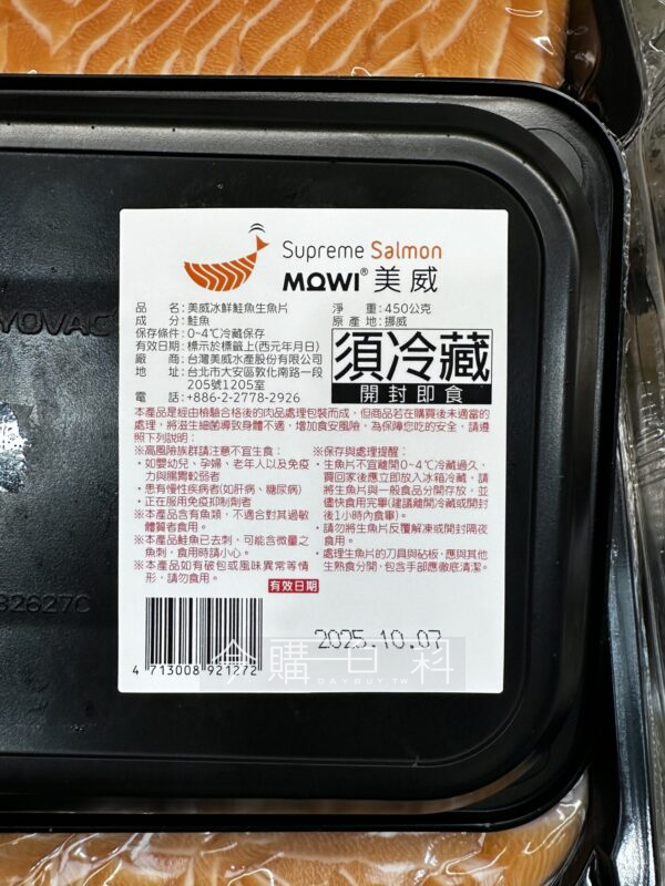 嚴選新鮮空運來台,肉質滑嫩、鮮甜,此產品附山葵醬以及醬油包,養殖於挪威峽灣純淨海域,油質豐厚且分布均勻,魚肉可能含細刺食用請小心。