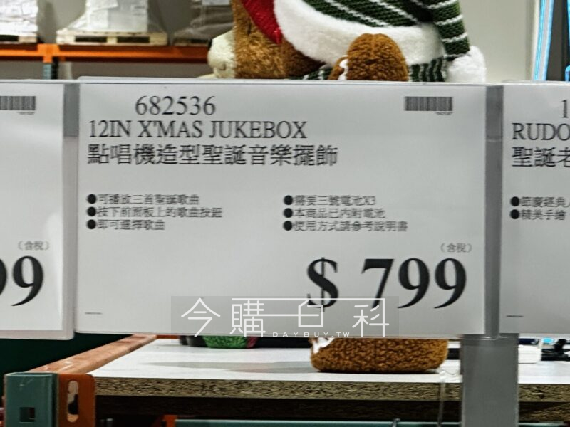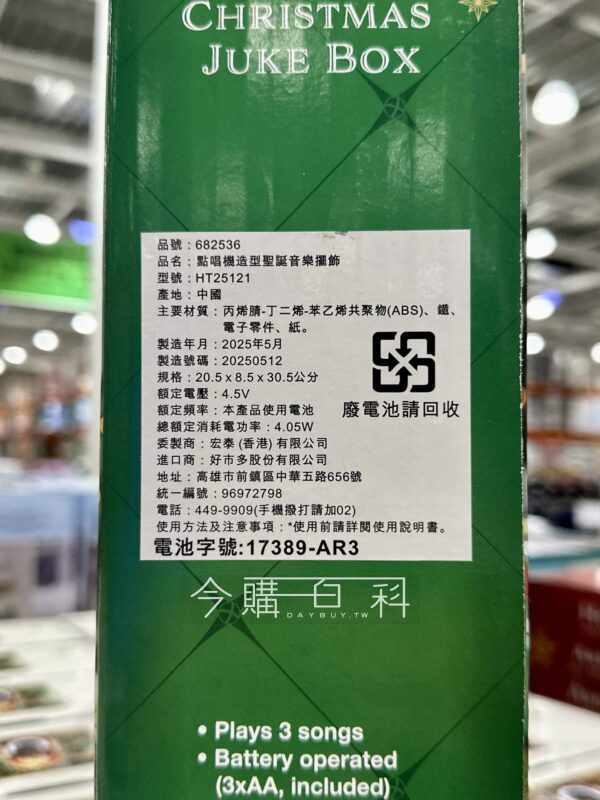 可播放三首聖誕歌曲,按下前面板上的歌曲按鈕即可選擇歌曲,需要三號電池*3,本商品已內附電池,使用方式請參考說明書。