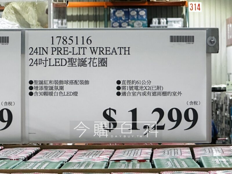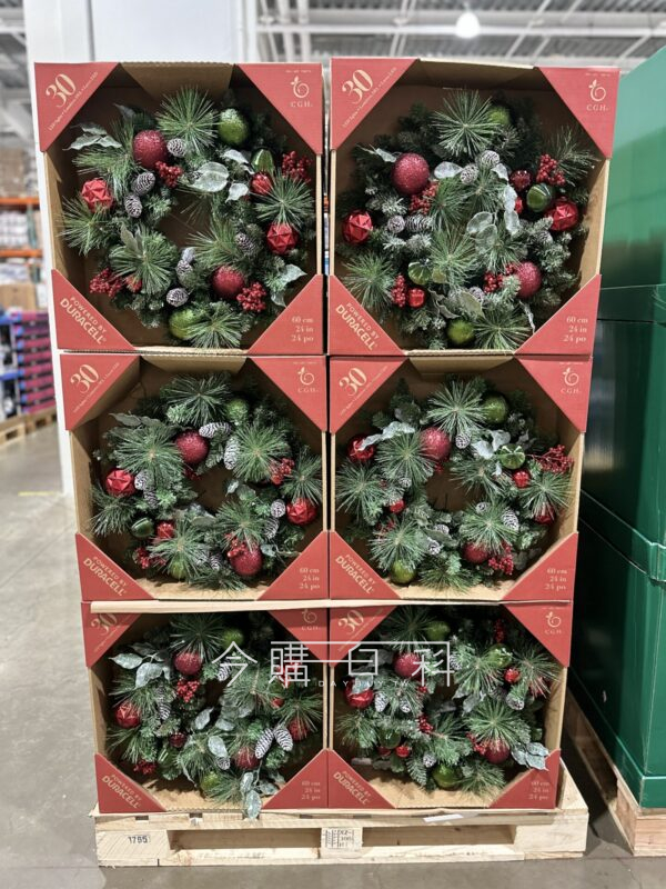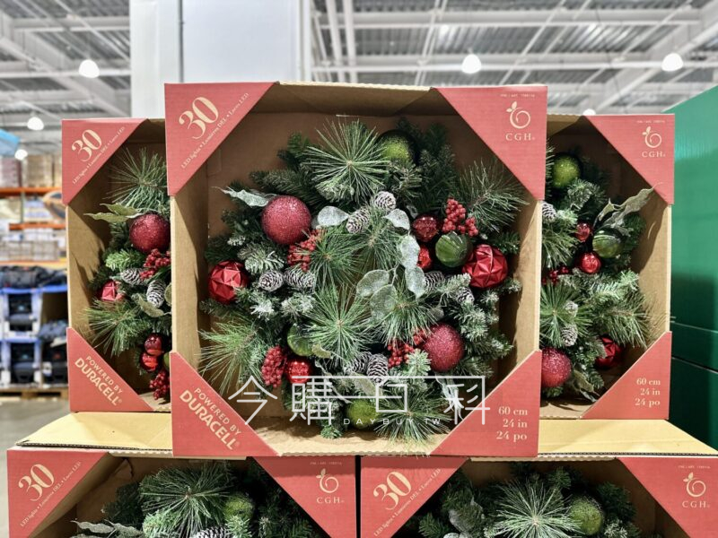 聖誕紅和裝飾球搭配裝飾,增添聖誕氛圍,含30顆暖白色LED燈,直徑約61公分,需1號電池*2(已附),適合室內或有遮雨棚的室外。