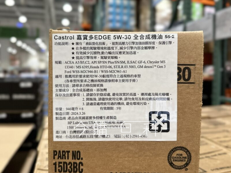 美國製合成機油,獨特專利液鈦勁化科技,適用於汽油引擎車輛,API SP/SN PLUS/SN/SM,可預防低速早燃發生,使用前請參閱車主手冊。