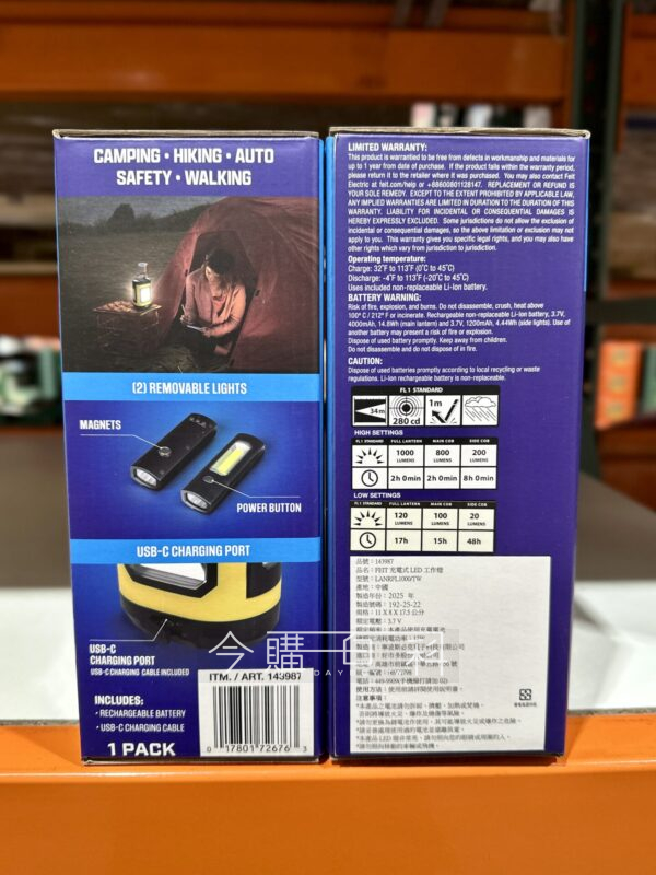 兩側燈為可拆式,提把方便攜帶,可作工作燈、手電筒、提燈,附TYPE C充電線,使用請詳閱說明書。