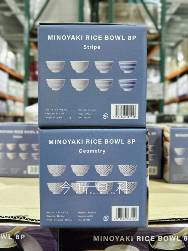 容量約325毫升/件,碗直徑約11.8公分,兩種組合可選:條紋、幾何,適合做為湯碗、飯碗,適用於洗碗機及微波爐。