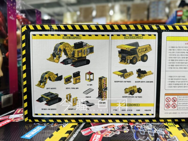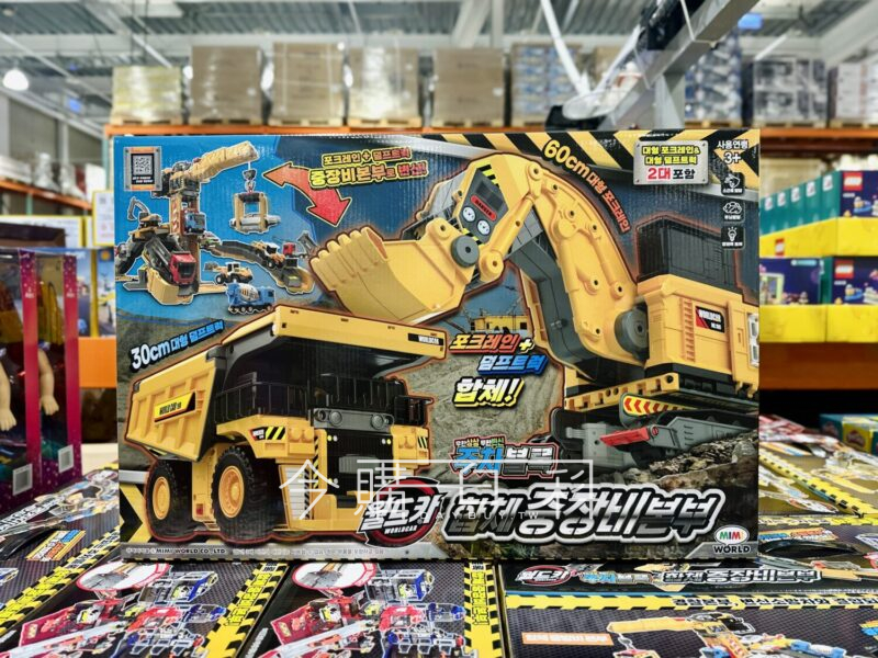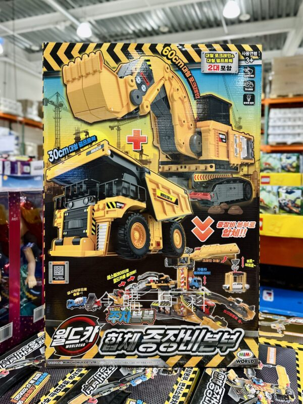 兩輛大型重型設備車組合,可變身為重型設備總部,車輛也能單獨使用,挖掘機可360度自由移動,車輀運輸車有牽引功能,適用年齡:三歲以上。