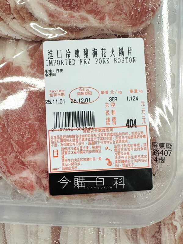 產地:丹麥,冷凍豬肉,部位:肩胛部梅花肉,火鍋片0.2公分規格修切,瘦肉間帶有小部分油脂,適合火鍋/燒烤/快煎。