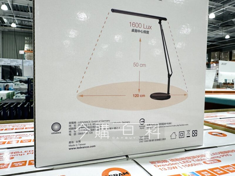 石磨外觀極簡質感兼具,42CM寬燈罩照射面120CM,燈臂採鋁金屬輕巧設計,護眼光學柔光片,消除疊影,觸控式連續調光7段調色。