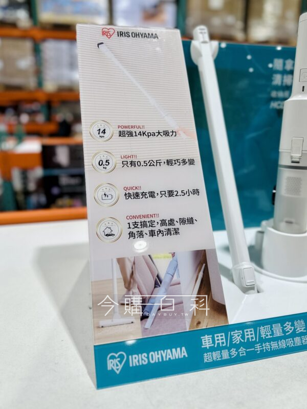 360度吸頭滑動清潔不受限,氣旋分離技術,吸力65W,充電4H一般模式使用0.5H,配件:毛刷吸頭、隙縫清潔吸嘴、集塵杯、保養刷。