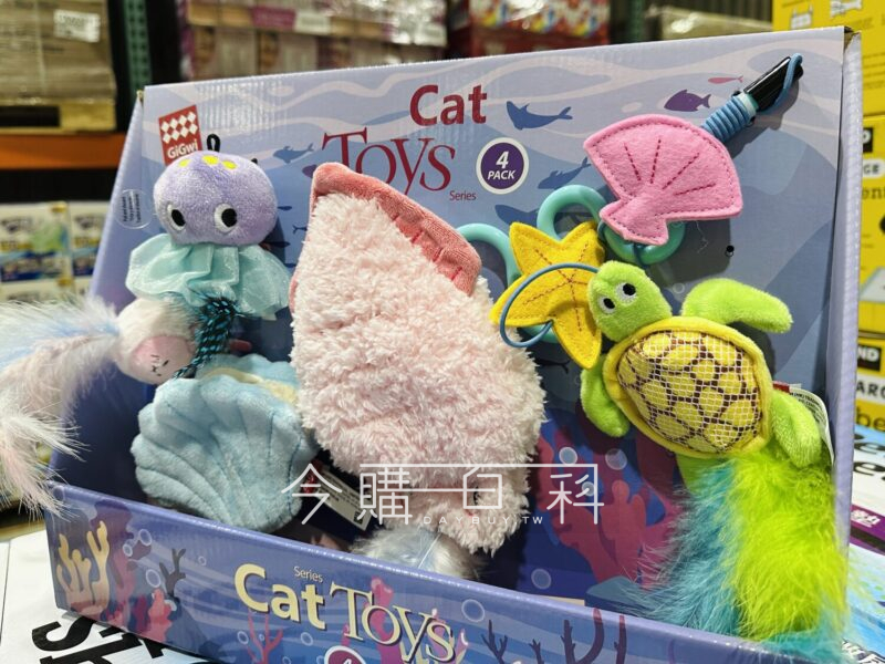 貝殼玩具內有響紙也可藏食,海龜逗貓棒可與寵物互動,海兔內有鈴鐺可讓貓咪玩耍,水母可發聲與發光增加趣味,烏賊玩具布料舒適內有響紙,玩具內皆有貓草可吸引貓咪。