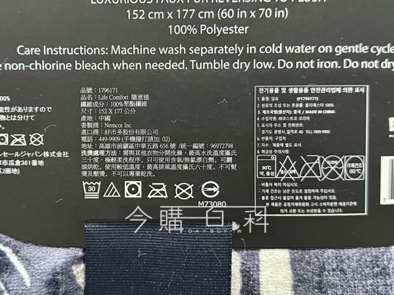 厚度330+320GSM,仿毛皮設計,保暖性佳,質地輕柔,收納輕鬆容易,可機器洗滌方便清潔,請與其他衣物分開洗滌,可用於居家休憩或出外旅遊。