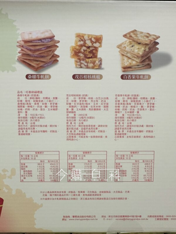 百香果及桑葚牛軋餅:水果牛軋糖搭配減鹽蘇打餅,以海藻糖取代砂糖降低甜度。茂谷柑核桃糕:新鮮核桃搭配減糖果餡口感清爽,無添加防腐劑、人工色素。