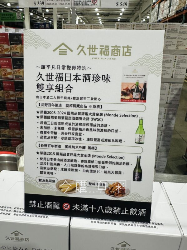 含日本酒二入與干貝絲/鱈魚起司