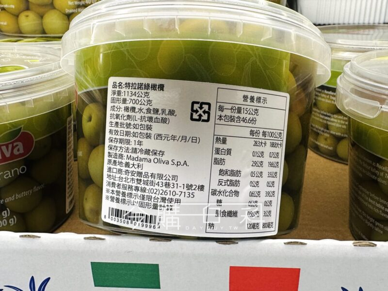 綠橄欖形狀圓潤,果肉緊實,可用於蔬菜沙拉或雞尾酒,可直接作為點心食用,可用於義大利麵或餐點配料,產地:義大利。