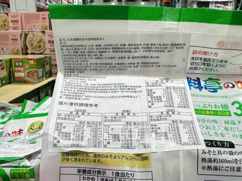 四種口味:海帶芽、長蔥、油豆腐及豆腐,獨立包裝,方便攜帶,只需加入熱水攪拌。