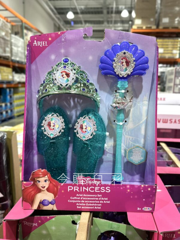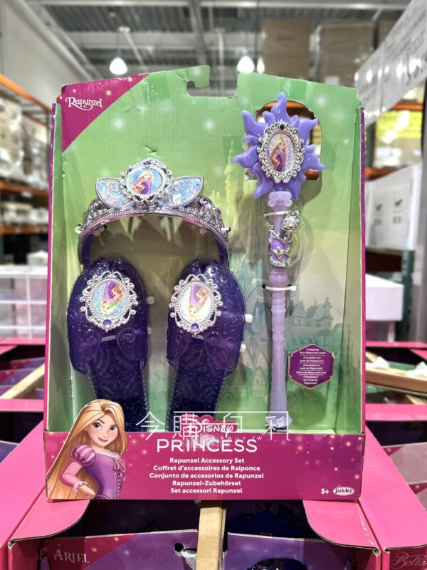 含公主髮飾、鞋子、魔法棒,讓孩子沉浸在角色扮演遊戲或派對變裝等,適用年齡:三歲以上。