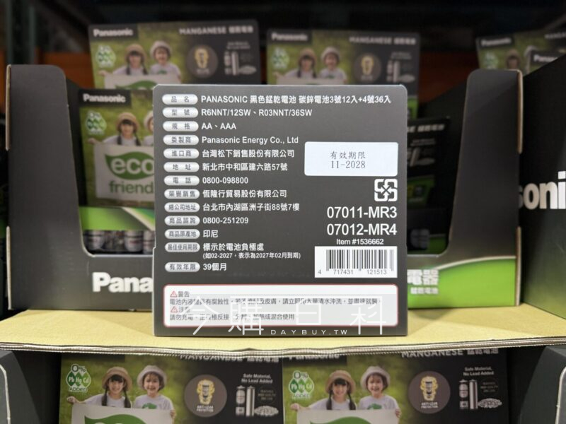 PANASONIC 錳乾碳鋅電池3號+4號 #1536662 https://www.daybuy.tw/costco/231927/