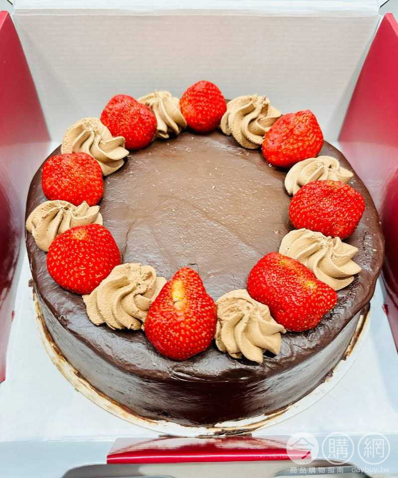 使用比利時進口73%黑巧克力所製作巧克力甘納許,搭配新鮮草莓與鬆軟香甜的巧克力戚風蛋糕。
