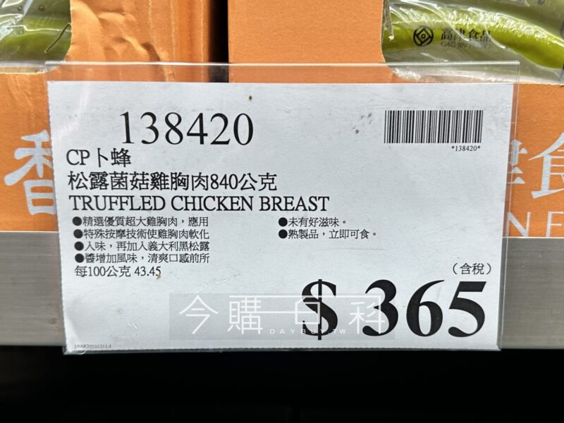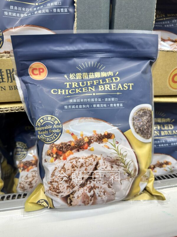 精選優質超大雞胸肉,應用特殊按摩技術使雞胸肉軟化入味,再加入義大利黑松露醬增加風味,前所未有好滋味,一試便知。熟製品,立即可食。