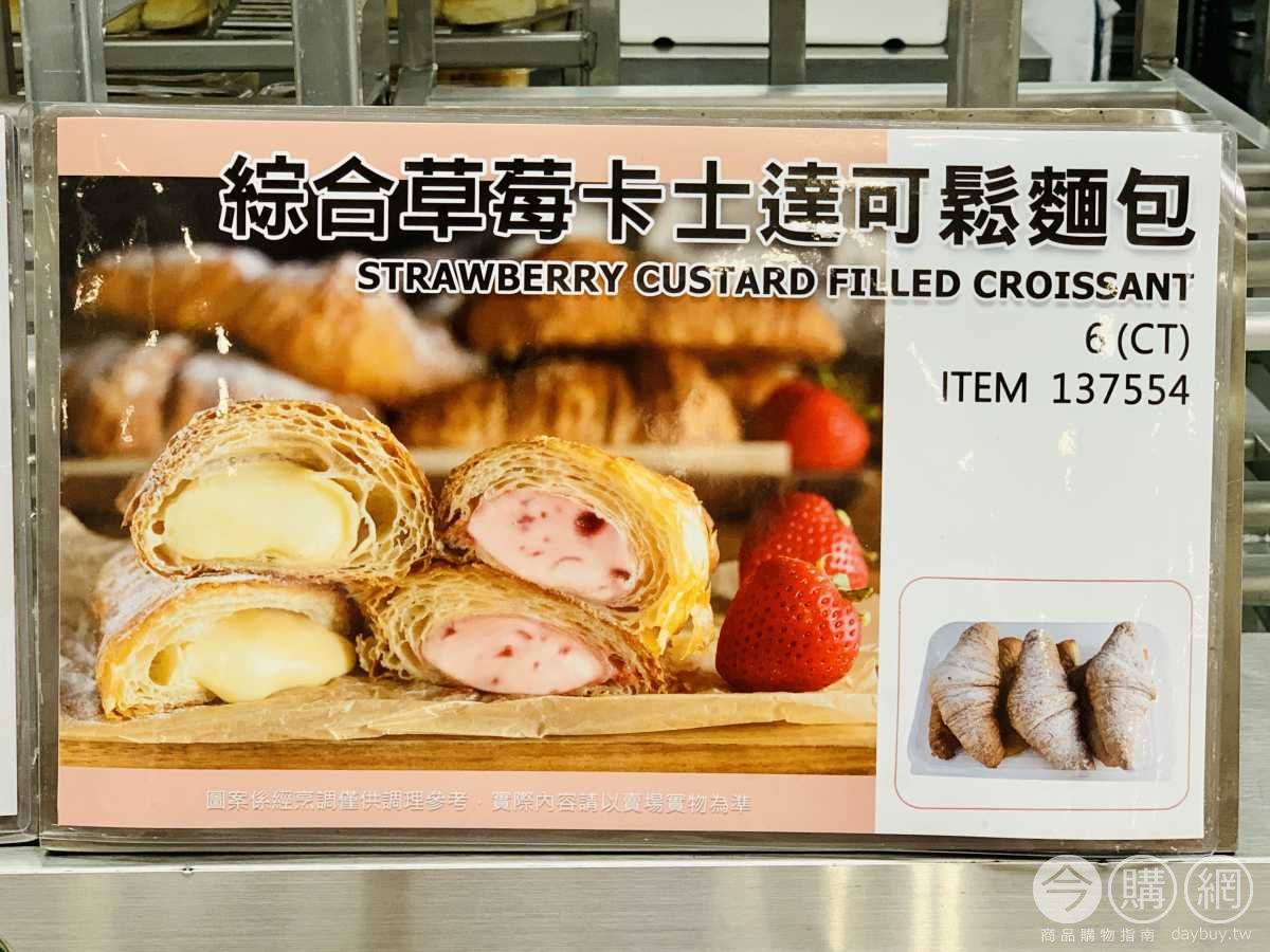 使用法國麵粉,24.9%奶油堆疊出層次分明的可鬆麵包,內含卡士達奶油餡及草莓奶油餡。