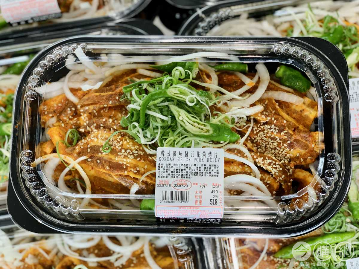 厚切豬五花,搭配洋蔥、青蔥及糯米椒,搭配泡菜包菜食用美味可口,獨特韓式辣味醬醃製,煎烤皆宜。