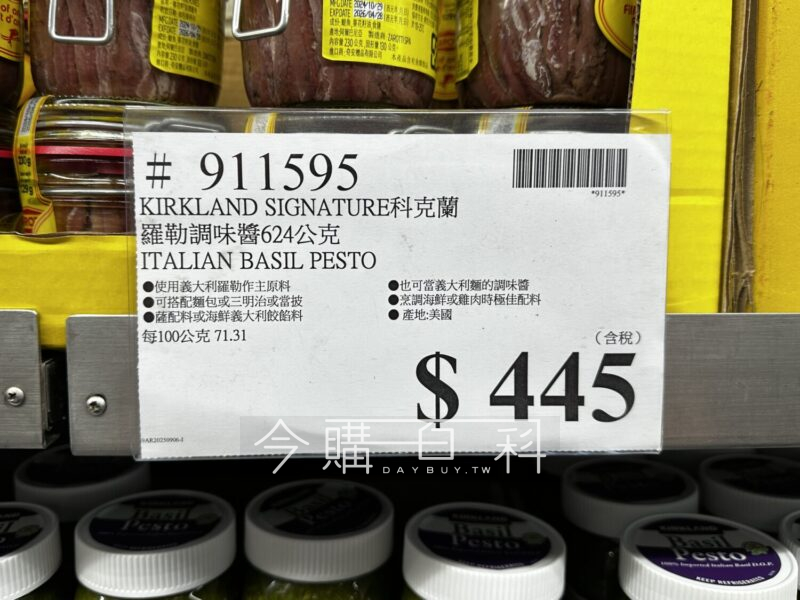 使用義大利蘿勒做主原料,可搭配麵包或三明治或當披薩配料或海鮮義大利餃餡餅,也可當義大利麵的調味醬,烹調海鮮或雞肉時極佳配料,產地:美國。