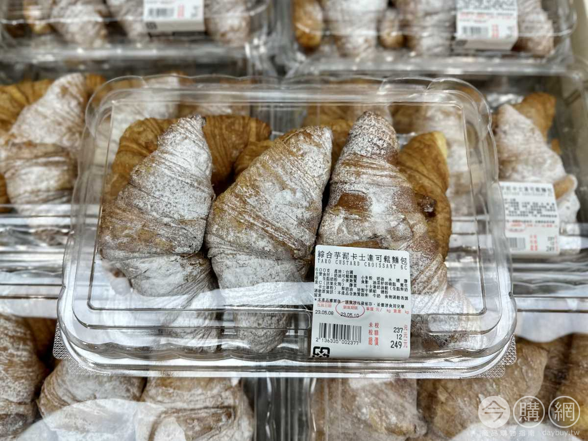 使用法國麵粉24.9%奶油,堆疊出層次分明的可鬆麵包,內含卡士達奶油餡及芋頭奶油餡。