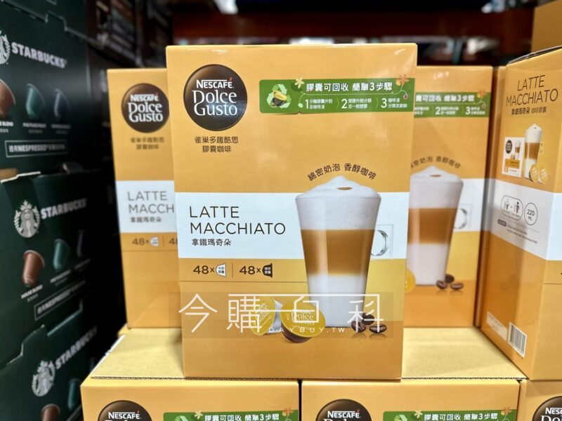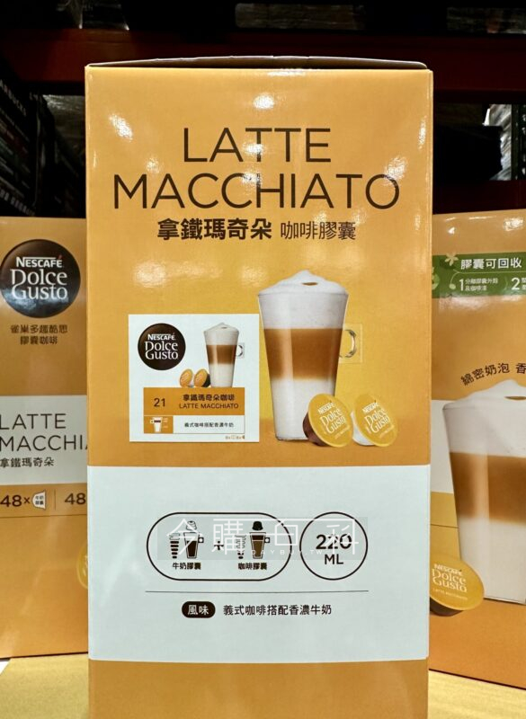 拿鐵瑪奇朵膠囊組(含糖),純正中南美洲阿拉比卡豆,香醇牛奶與綿密奶泡,適用DOLCE GUSTO咖啡機。