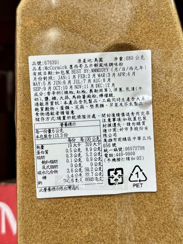 美國MCCORMICK知名品牌,不含任何人工香料,為美式或墨西哥式料理不可或缺的調味。