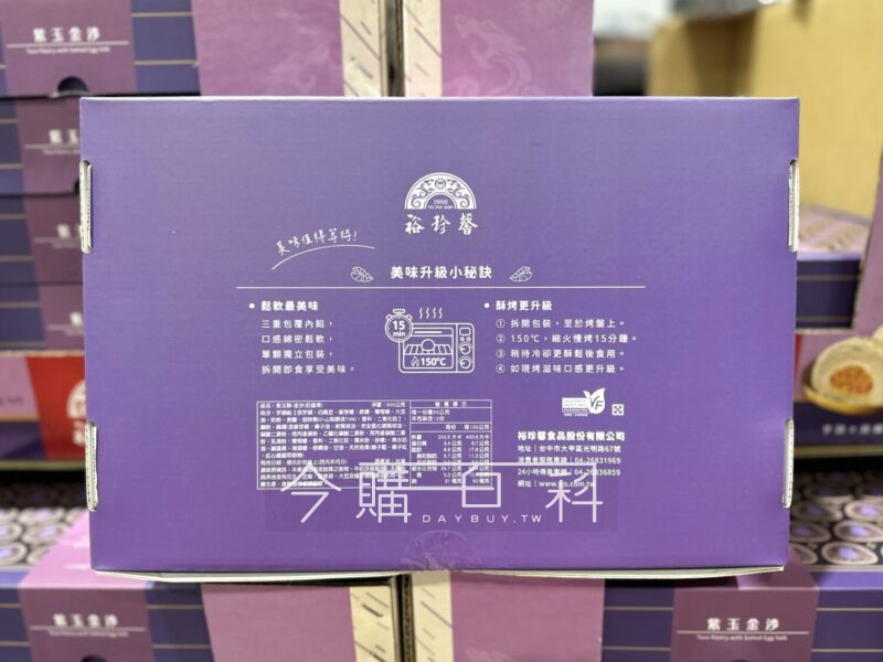 裕珍馨人氣商品獨家改款,原粒鹹蛋黃包入鬆綿芋泥,米製麻糬口感Q彈,外皮層次分明,三層內餡口感豐富,另附提袋。