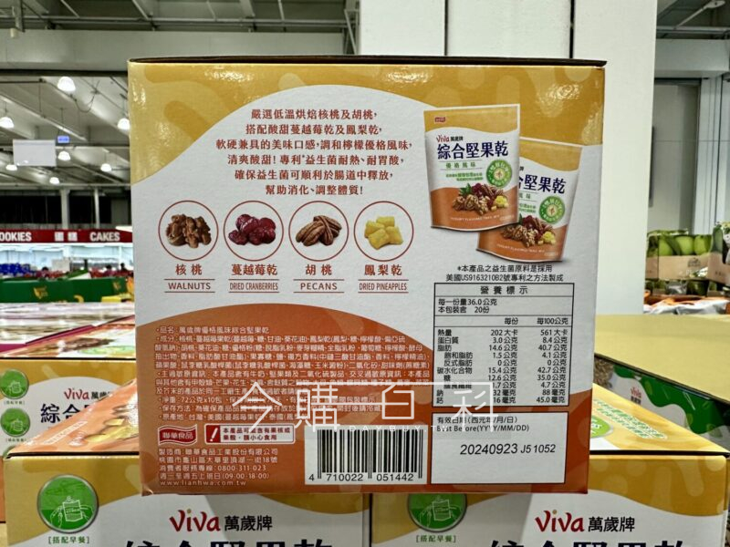 內含核桃、胡桃、鳳梨乾、蔓越莓乾,調和檸檬優格風味,口感酸爽清甜不膩,獨立小包裝,方便攜帶,下午茶、野餐點心、郊遊旅行的最佳分享包。