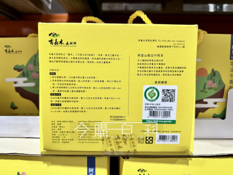 產自嘉義海拔1300公尺的阿里山高山春茶,於限定午時黃金時段採收,為高價值的阿里山烏龍茶,茶湯金黃透亮,口感溫潤,冷熱泡皆可,擁有生產履歷品嚐更安心,送禮自用兩相宜。